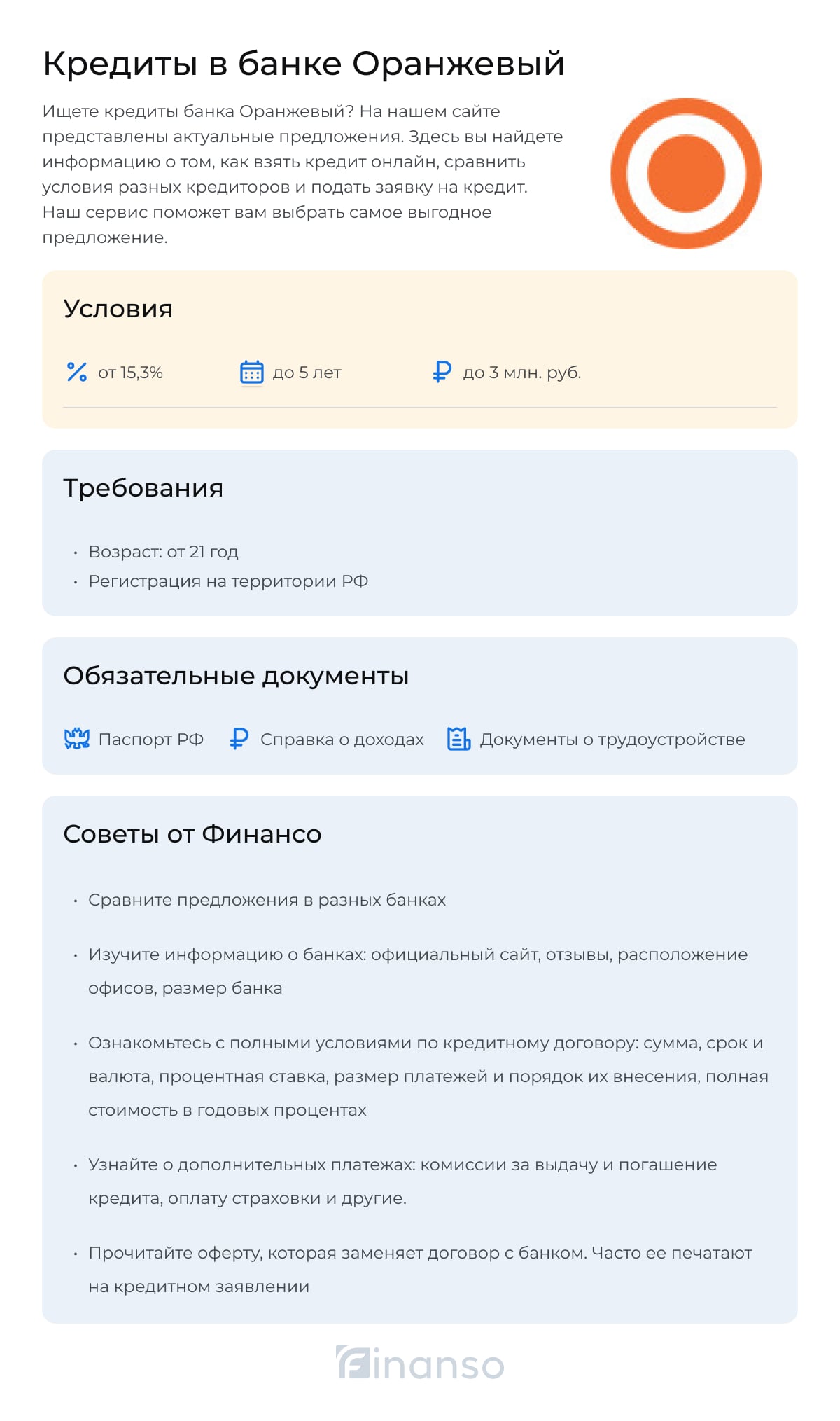 Кредиты банка Оранжевый