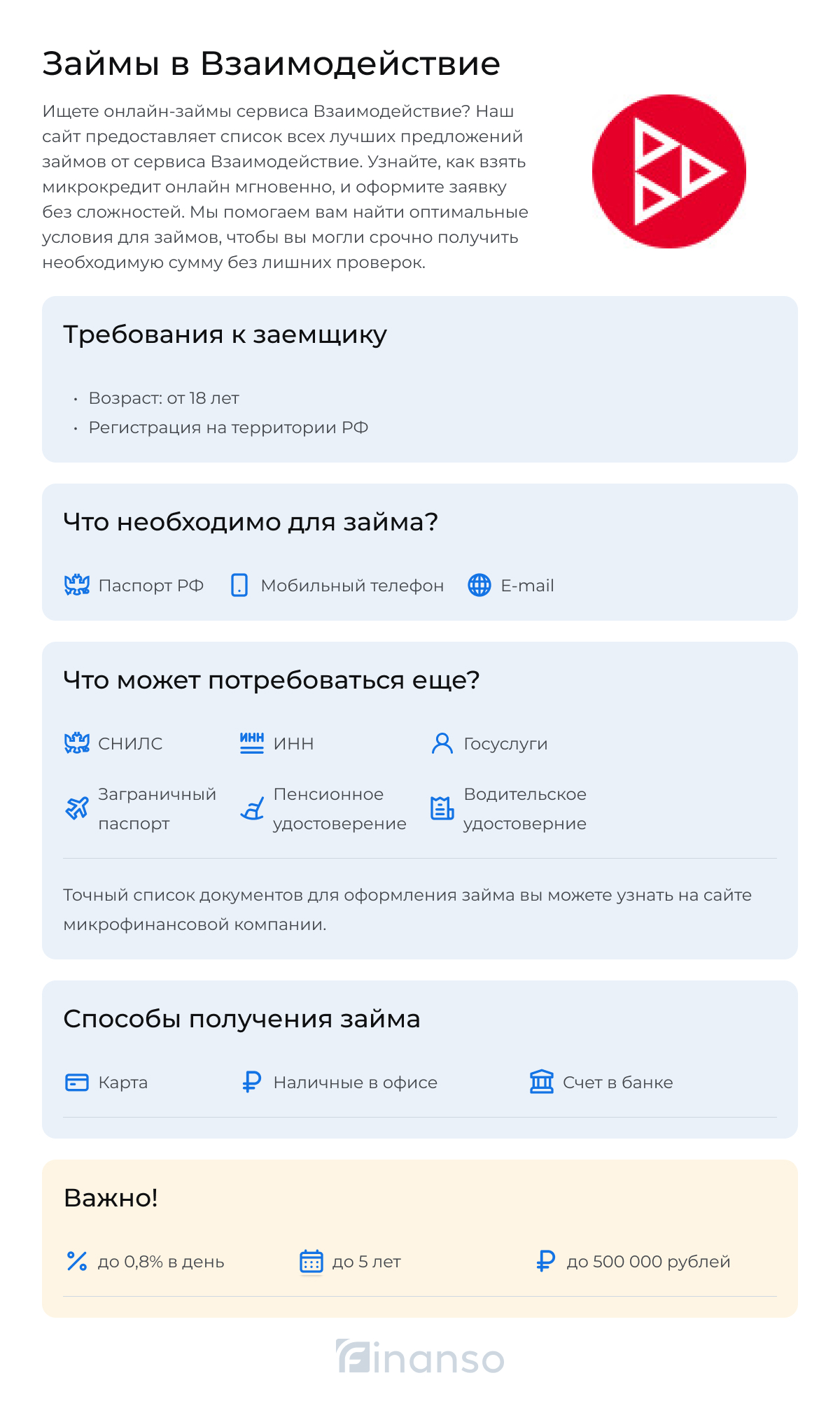 - Потребительский микрозайм для физических лиц выдается только гражданам РФ в возрасте от 18 до 60 лет при наличии постоянной регистрации на территории России. В отдельных случаях возрастное ограничение может быть увеличено по решению органа управления компании.